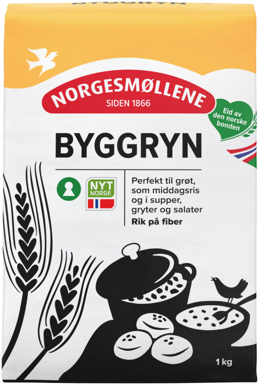Norgesmøllene Byggryn Perfekt til grøt som middagsris og i supper, gryter og salater. Rik på fiber!